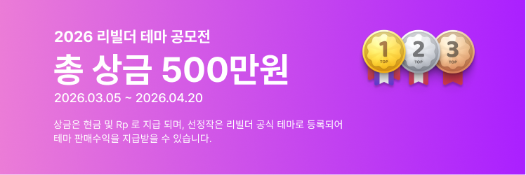 3월 5일, 리빌더 공식 첫 테마 출시를 기념하여 리빌더 테마 공모전을 개최합니다.