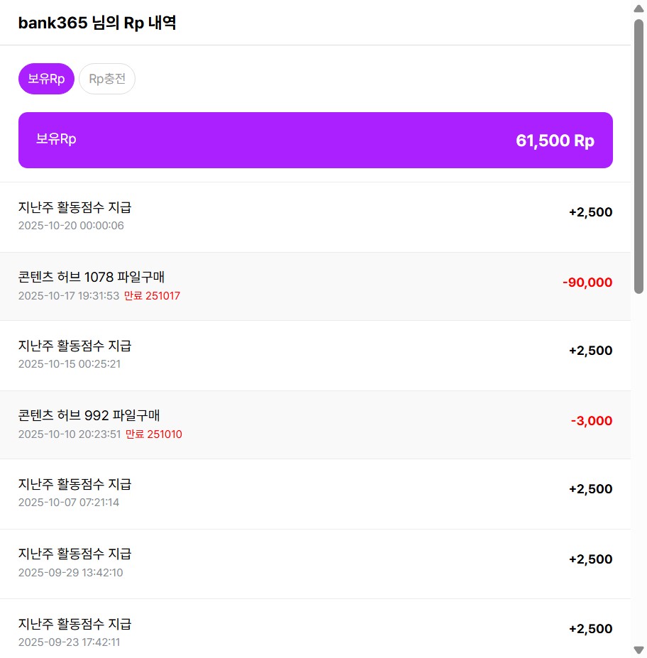 전에는 RP입금시 쪽지로도 알림을 받았는데...
