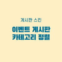 안녕하세요...미니님a입니다.먼저 해당 내용은 멤버십 내 "이벤트 게시판 스킨" 을 기반으로 제작 되었습니다.https://rebuilder.co.kr/item/356이벤트 게시판 스킨 > 부가기능 | 그누보드 리빌더웹사이트 부터 쇼핑몰, 그리고 플랫폼 까지! 가볍게 만들고 묵직하게 확장하는 그누보드 리빌더https://rebuilder.co.kr/item/356[기능 소개]1. 이벤트 게시판 내 자체 카테고리 기능(게시판 내 카테고리 설정 필요하지 않음)2. 이벤트 게시판 등록 시 날짜 선택 오류 수정 버전 관련 게시글 https://rebuilder.co.kr/tip/313이벤트 게시판 날짜 오류 수정하기! > 팁과노하우 | 그누보드 리빌더웹사이트 부터 쇼핑몰, 그리고 플랫폼 까지! 가볍게 만들고 묵직하게 확장하는 그누보드 리빌더https://rebuilder.co.kr/tip/313[설치법]업로드 된 압축 파일(rb.event_bbs.zip) 다운로드 하여, 압축 해제 합니다. 압축 해제 이후 다음 경로에 붙혀 넣으시면 됩니다. theme/rb.basic/skin/board 폴더에 넣어주세요 그리고 게시판 관리자 페이지에서 해당 스킨으로 변경 해주시면 됩니다.[주의사항]1. 만약 개인적으로 커스텀한 이력이 있다면 반드시 백업을 해두시길 바랍니다. 기본 소스에서 덮어씌우는 기능이라, 유실된 소스에 대해서는 책임지지 않습니다.실제 구동 영상은 아래와 같습니다. 고맙습니다. [이 게시물은 리빌더님에 의해 2025-03-11 20:19:11 멤버십 자료실에서 이동 됨] [이 게시물은 리빌더님에 의해 2025-10-09 15:06:04 유저 자료실에서 이동 됨]