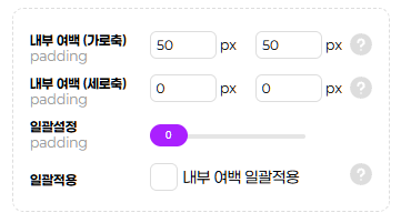 모듈 설정의 내부여백(가로축) 부분에서 50을 설정시