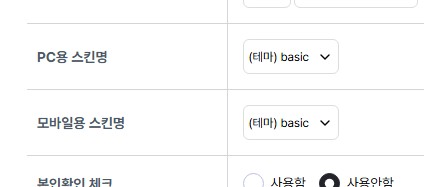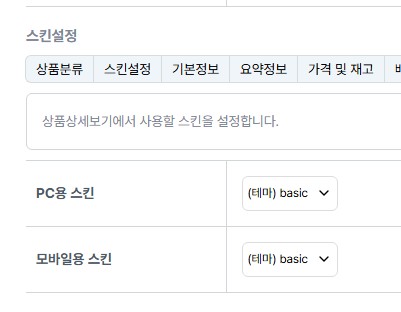관리자>쇼핑몰설정 > 스킨설정 란에도