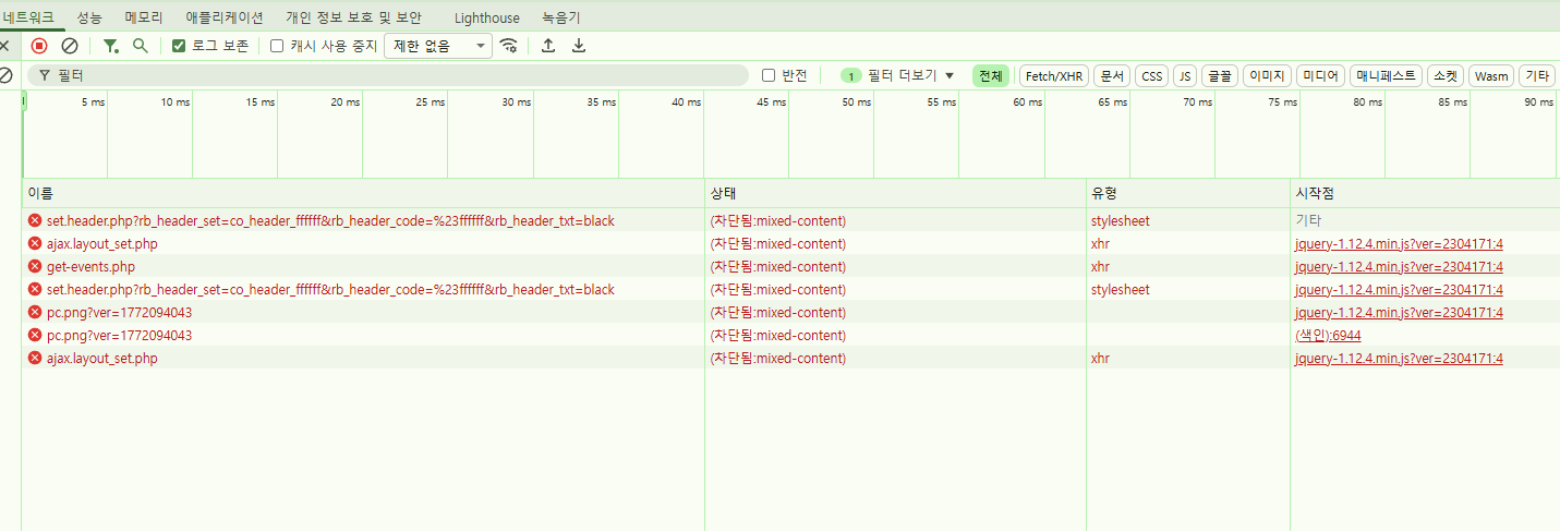브라우저에서 페이지를 새로고침하고 브라우저 콘솔을 확인하세요. Mixed Content 오류가 사라지고 AJAX 요청이 HTTPS로 정상 동작할 것입니다.