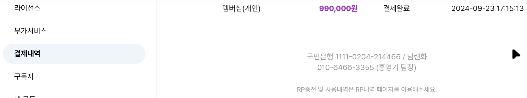멤버십 업그레이드로 정상 가입한게 아니라