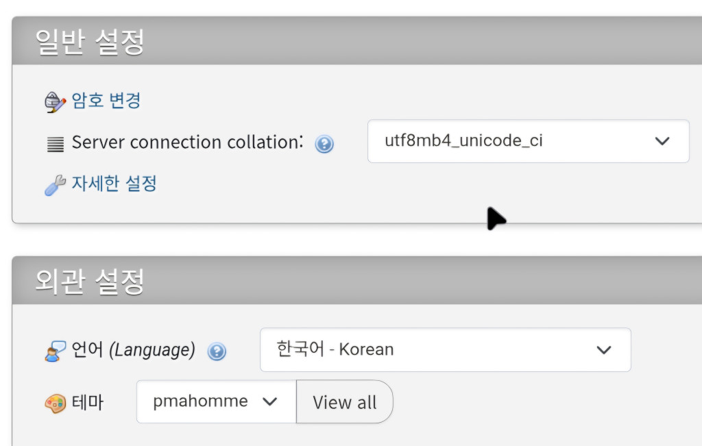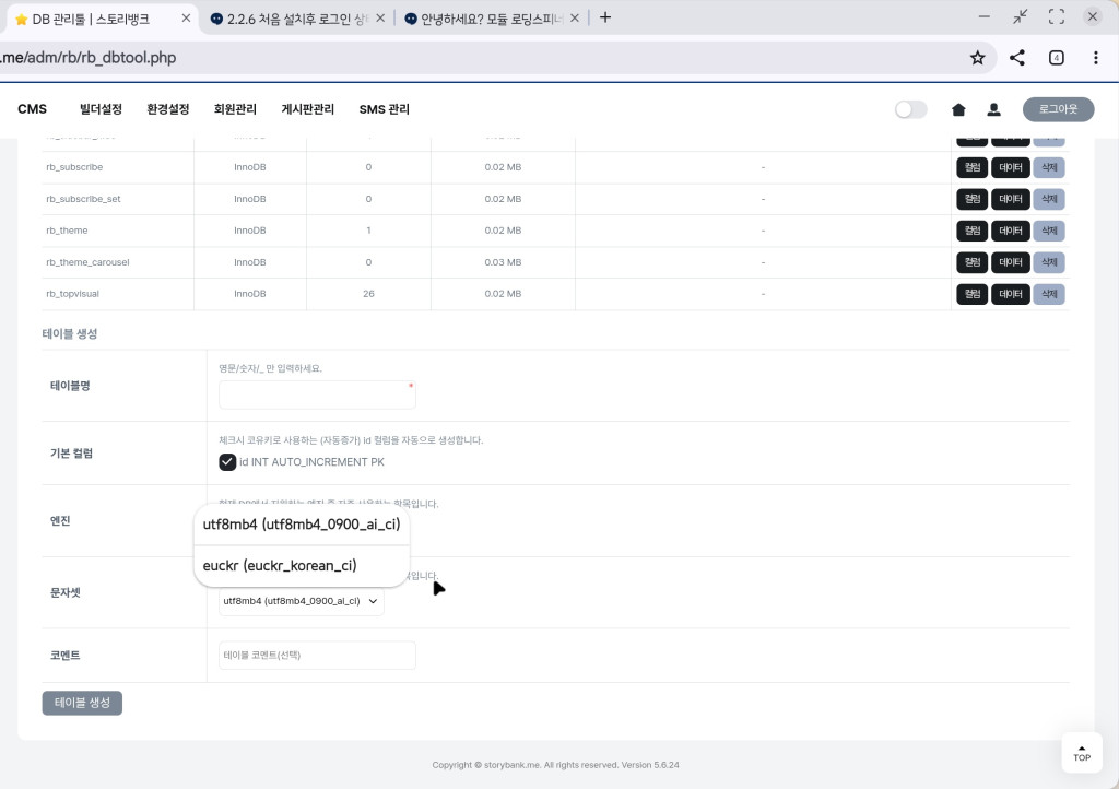 관리툴의 콜레이션 선택 항목에 충분히 반영되지 않은 상태입니다.