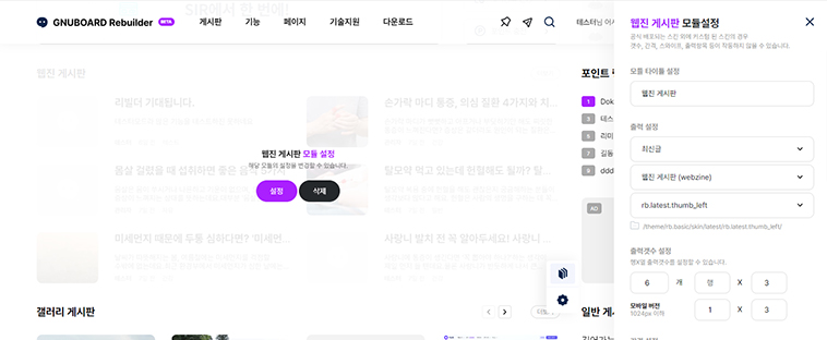메인페이지 > 모듈추가 또는 모듈설정 에서 최신글을 추가/변경하는 방법을 안내 합니다.