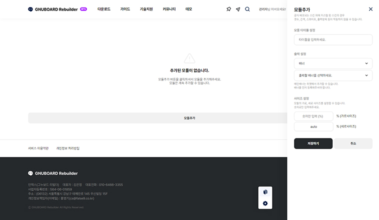 메인페이지로 이동 후 모듈 설정하기를 참고하셔서 모듈을 설정해주세요.