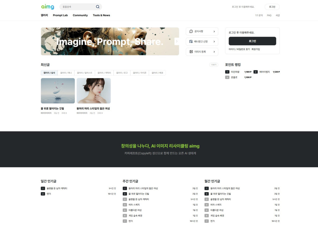 특별한 건 없고 ai로 생성하는 이미지들을 다른 사람들이 가져다 쓸 수 있으면 어떨까 하는 생각으로 구성해 봤습니다.