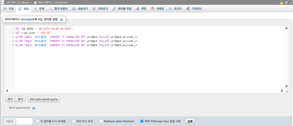 ALTER TABLE `테이블명` CONVERT TO CHARACTER SET utf8mb4 COLLATE utf8mb4_unicode_ci;
