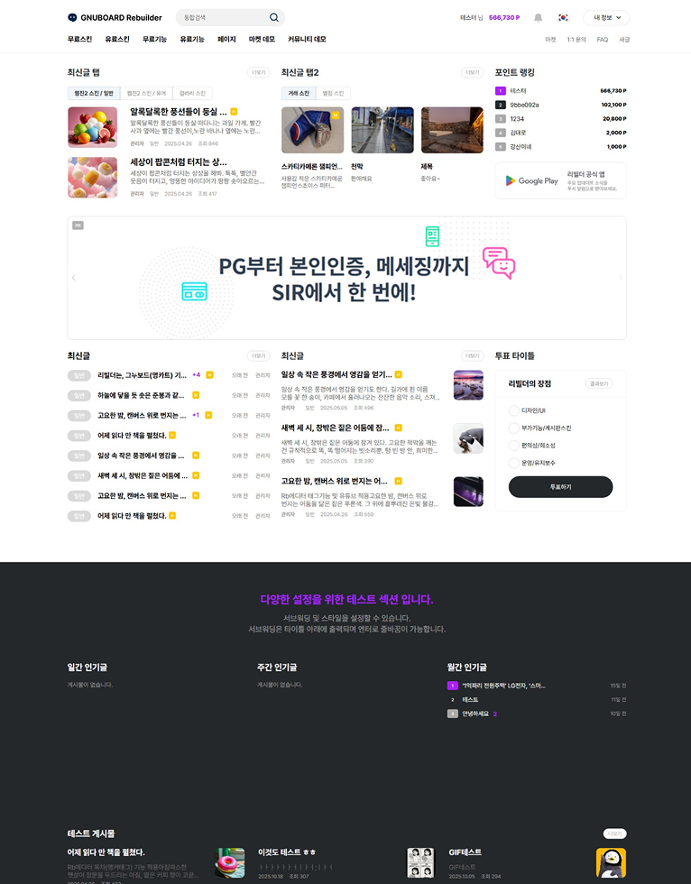 그누보드의 탄탄한 기본 기능을 바탕으로, 누구나 쉽고 빠르게